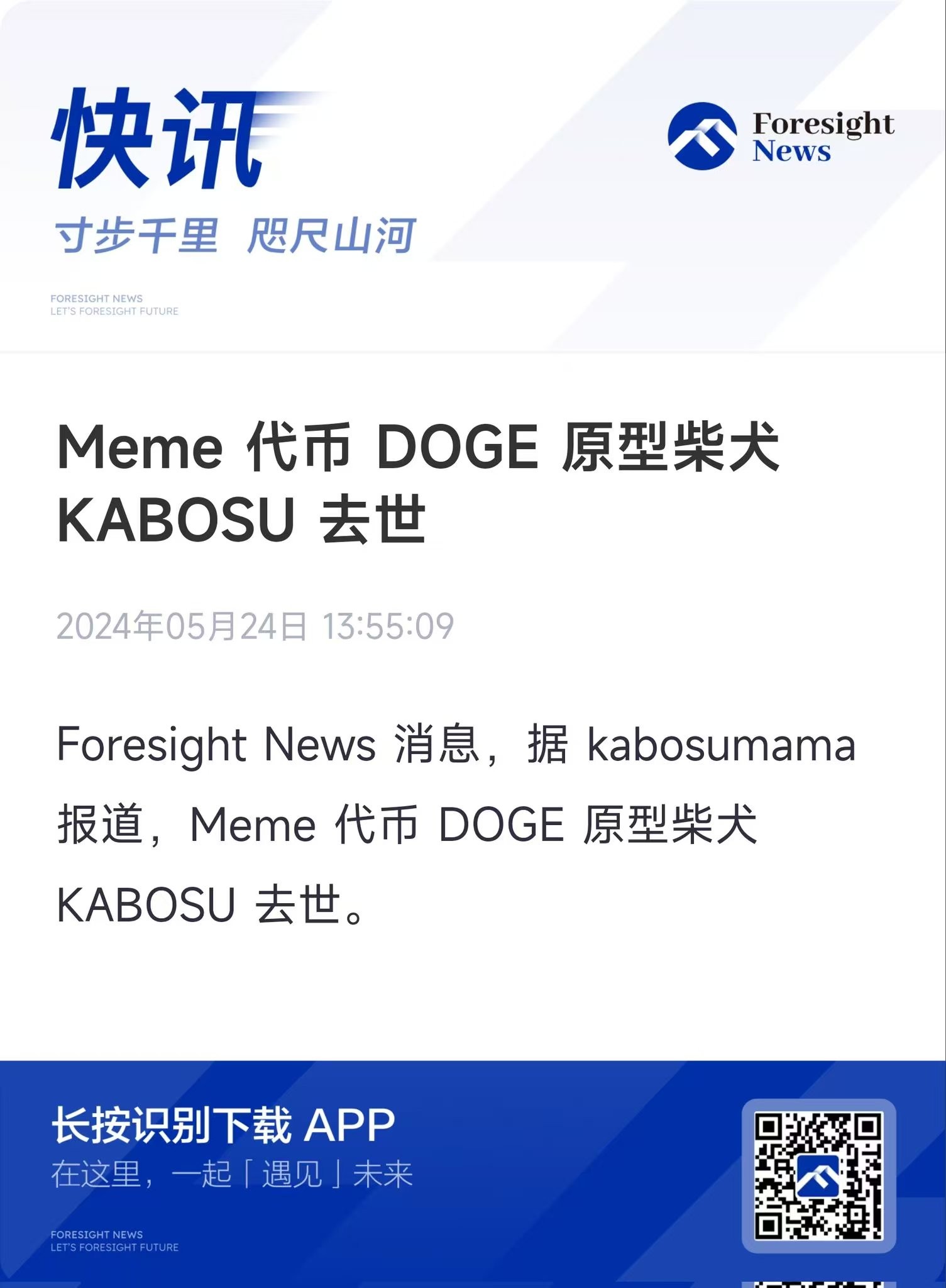 【再见Doge!“神烦狗”表情包原型柴犬 Kabosu 离世】全球知名、被十几亿人熟知的经典表情包“神烦狗 Doge ”原型,柴犬 Kabosu 于日本时间 7 时 50 分离世。Kabosu 的主人佐藤敦子在 X上发文说,“她在我的抚摸下,轻轻地离世了,就像睡着了一样。”